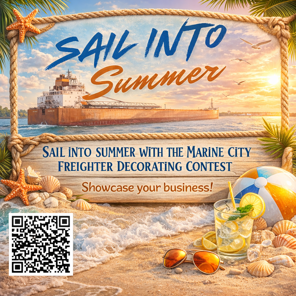 The Marine City Area Chamber of Commerce is excited to launch a fun and festive summer promotion inviting local businesses to decorate their very own freighter cutout to celebrate the arrival of summer!